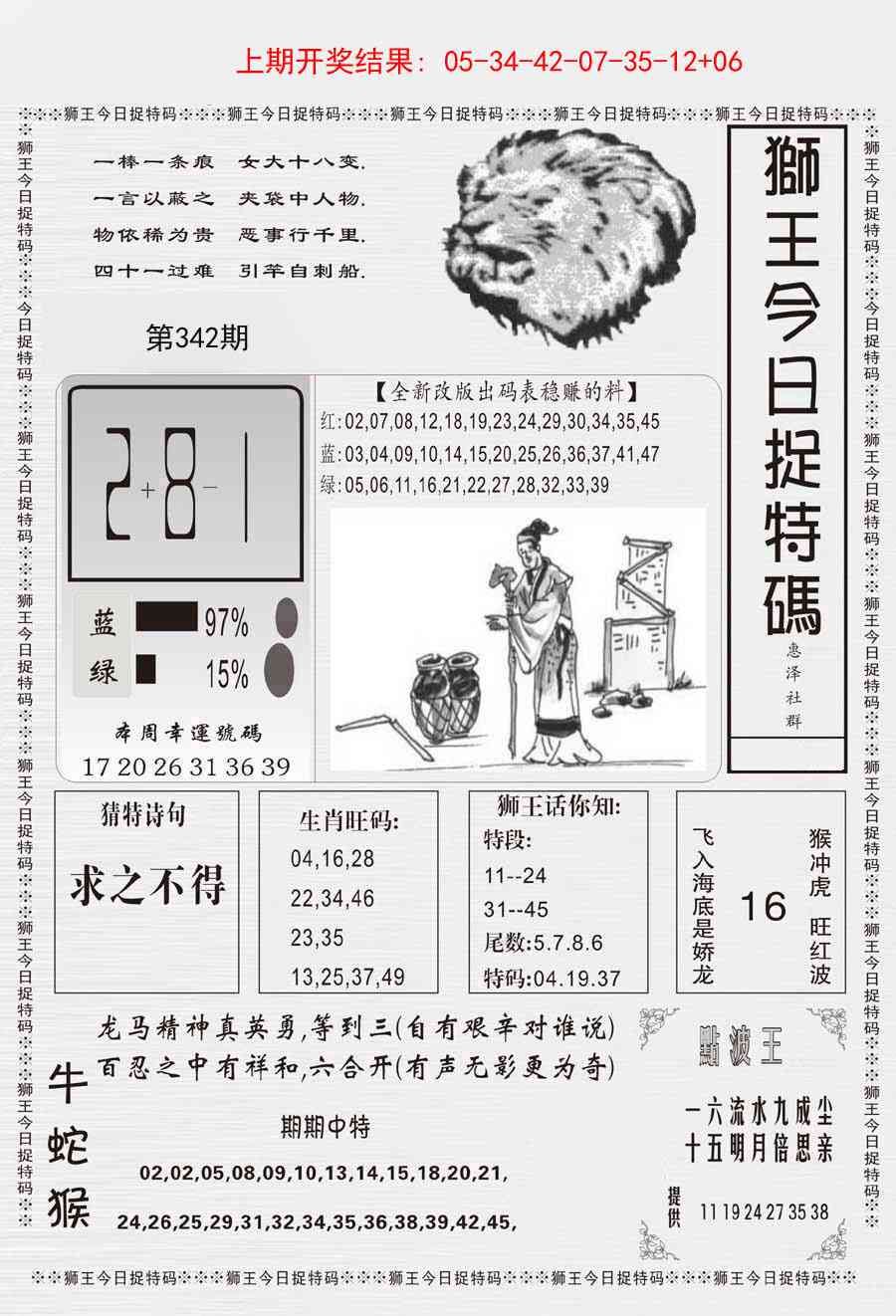 342期: 澳门六合皇彩圖信封【狮王平特】每期自动更新