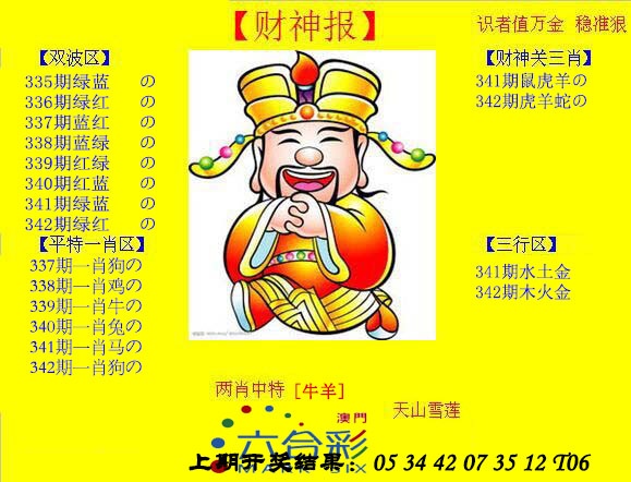 342期: 澳门六合皇彩圖信封【黄财神报】每期自动更新