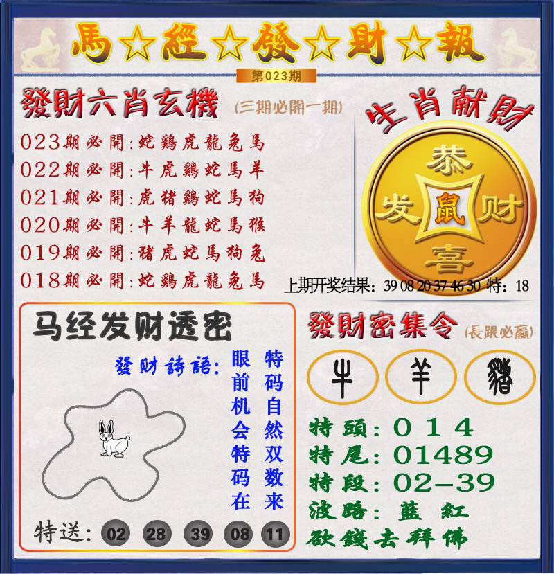 061期: 澳门六合皇彩圖信封【蓝财神报】每期自动更新